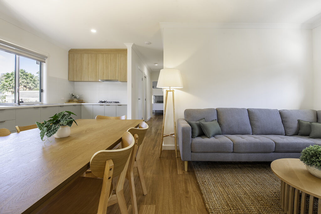 Built on site at the McLaren Vale Lakeside Caravan Park, these eight cabins overlook the creek and surrounding hills. The build consisted of six 2-bed cabins and two 3-bed cabins and were completed in six months. Featuring spacious living areas, large kitchen facilities and an ample deck; perfect for enjoying the scenery of McLaren Vale. The cabins are clad in James Hardie Primeline weatherboard cladding and colorbond feature infills above and below the windows.